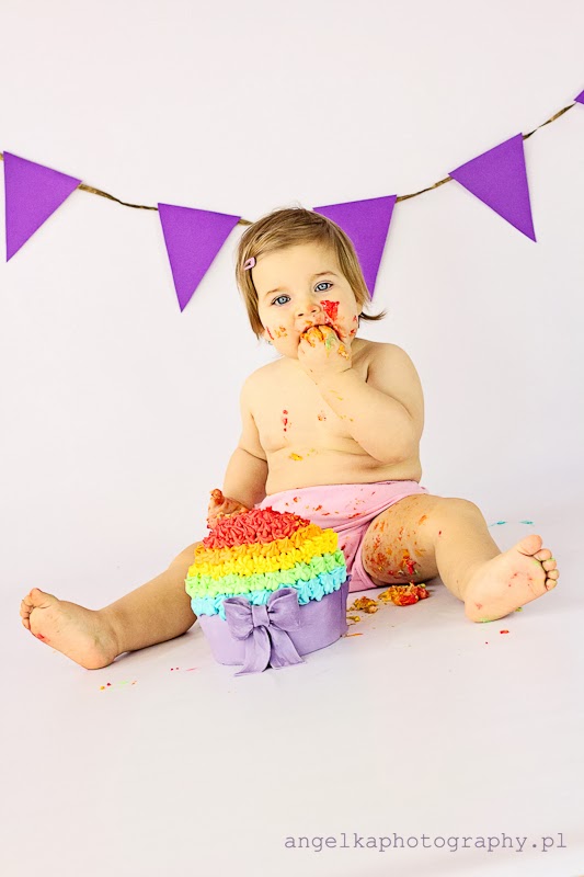 Ala nie lubi się brudzić i bardzo długo zabierała się do swojej urodzinowej babeczki…dopóki jej nie spróbowała :). Uwielbiam urodzinowe sesje dziecięce, no może jedynie troszkę mniej lubię potem sprzątać :)