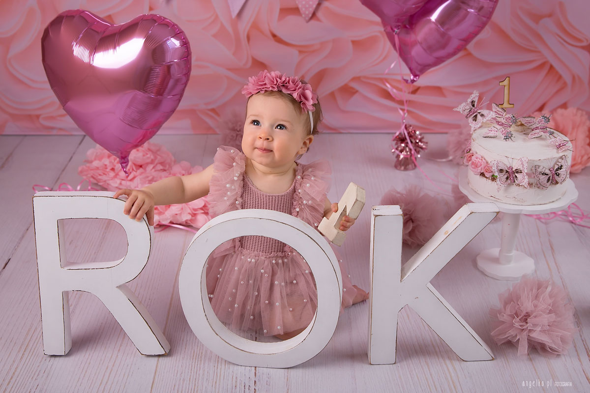 tort z motylkamirokrozowe balony sercabujany koniksesja na rokrok napis