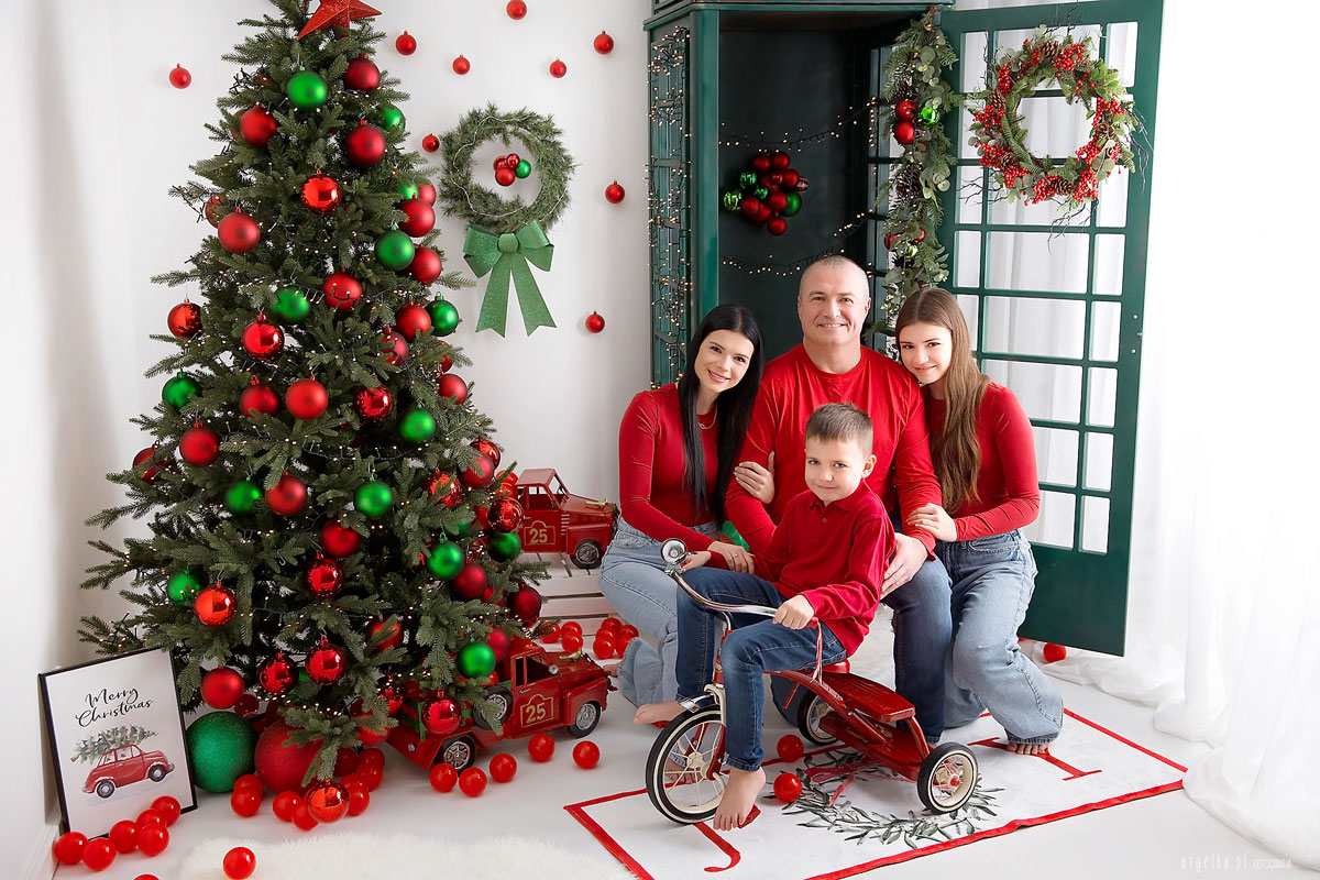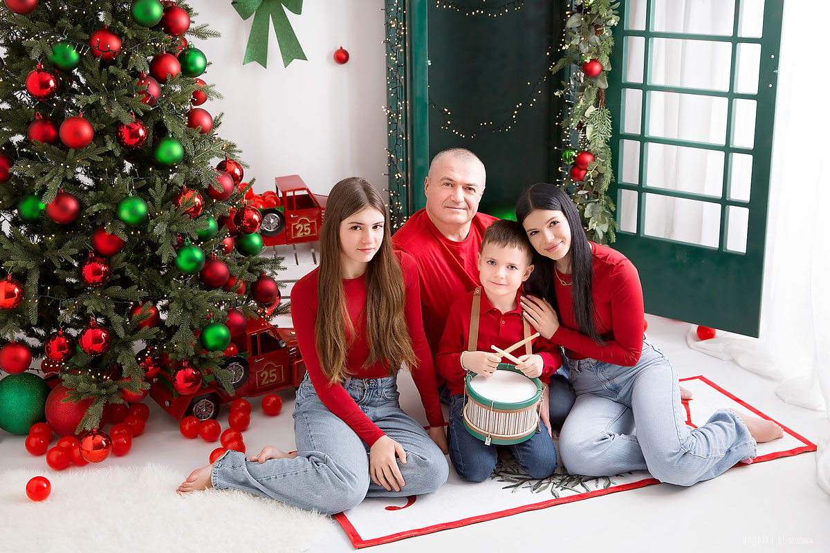 Tata z dziećmi na sesji rodzinnej- wspaniały prezent od dzieci.